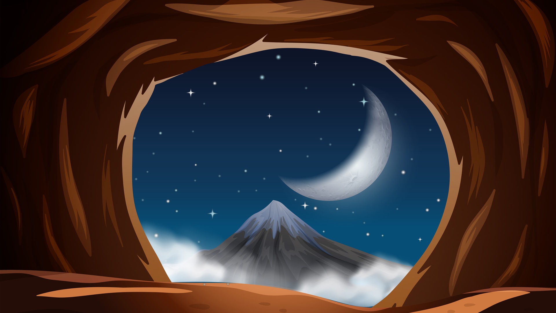Векторный Ночной вид из Пещеры