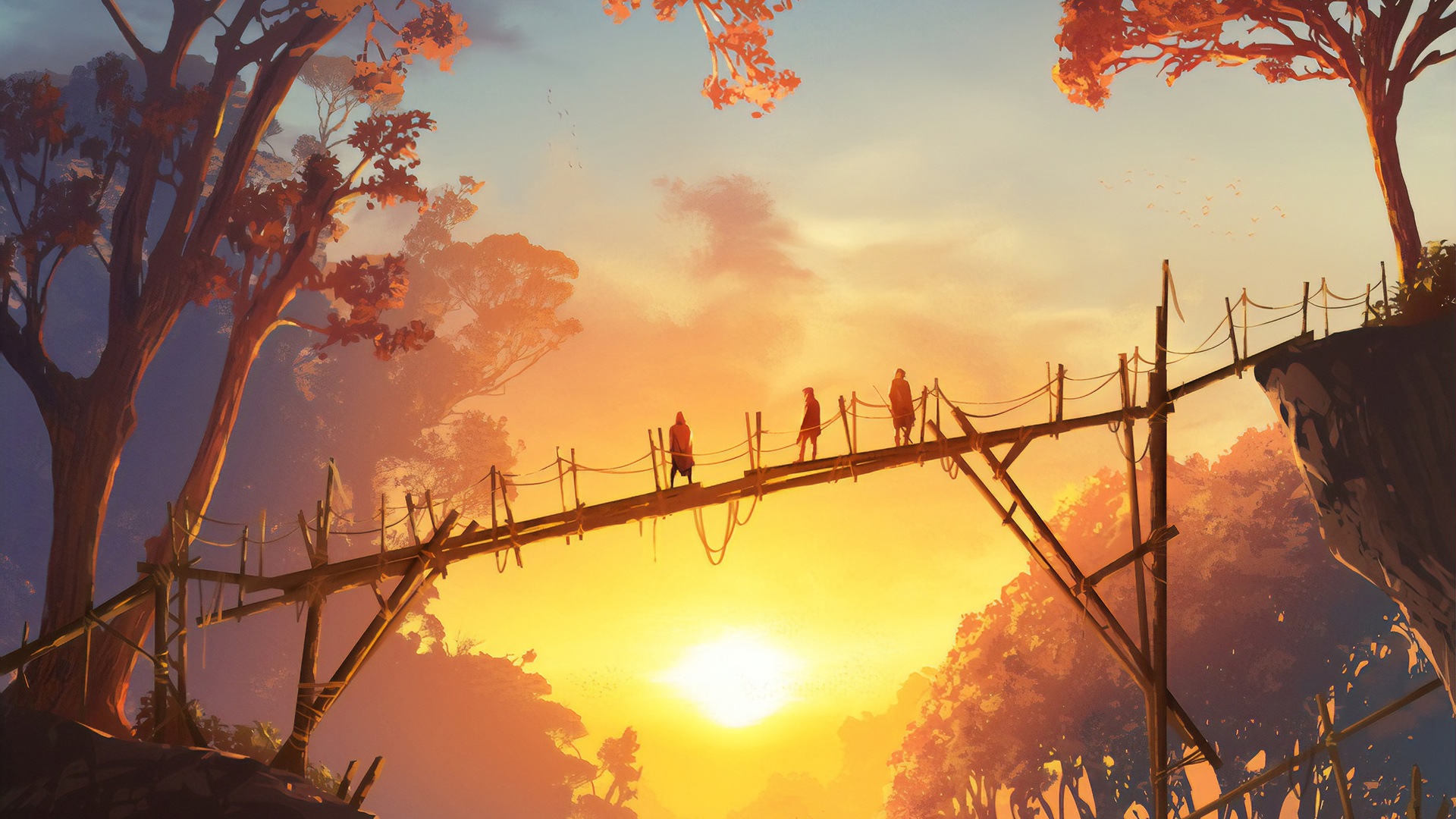 Закат на Деревянном мосту, Люди стоят