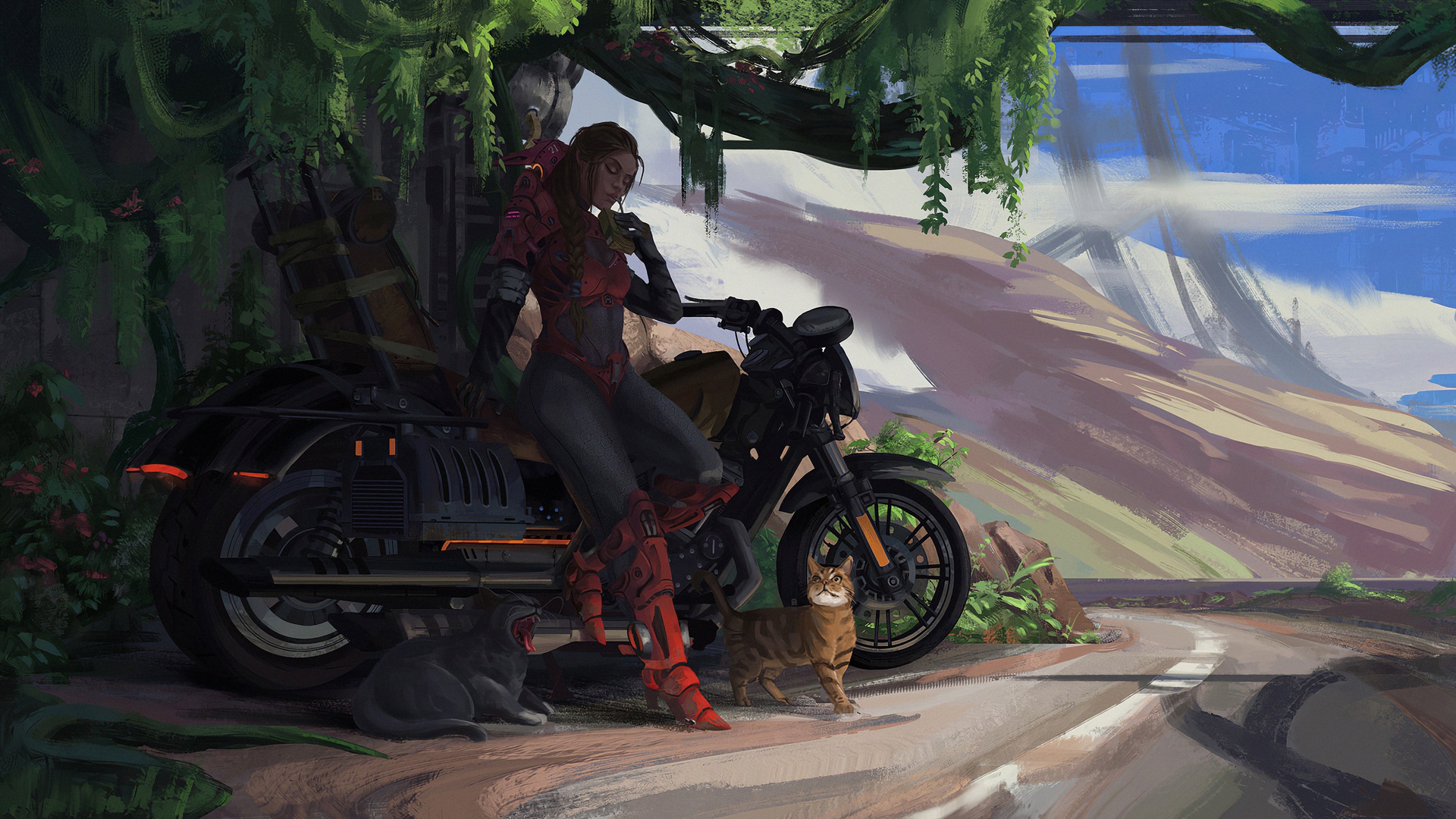 Девушка на велосипеде с Кошкой