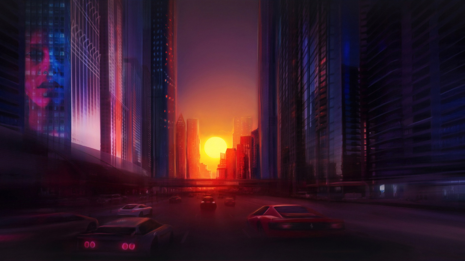 Цифровой рисунок Городского заката 4k