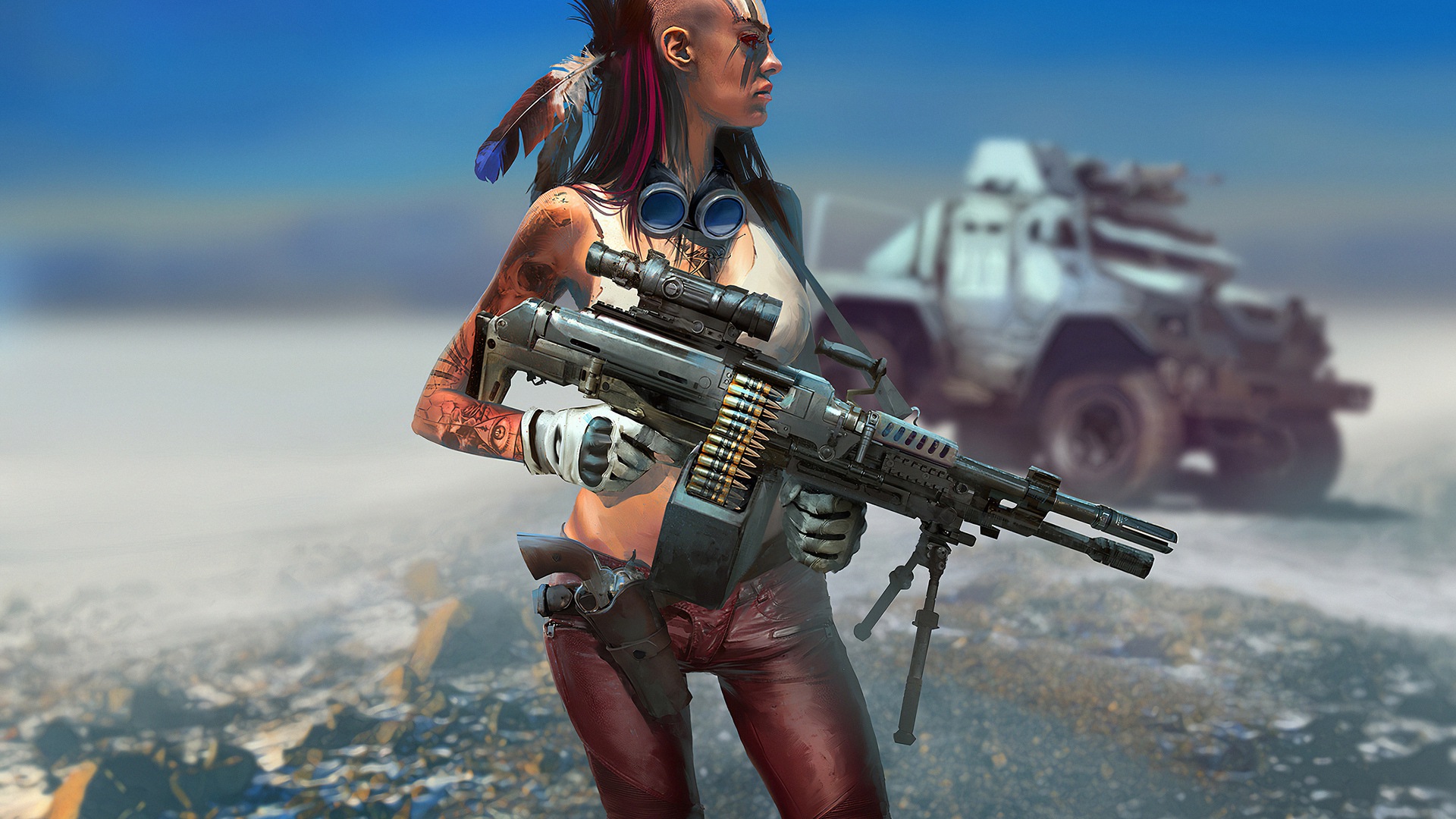 Девушка с грузовиком с оружием