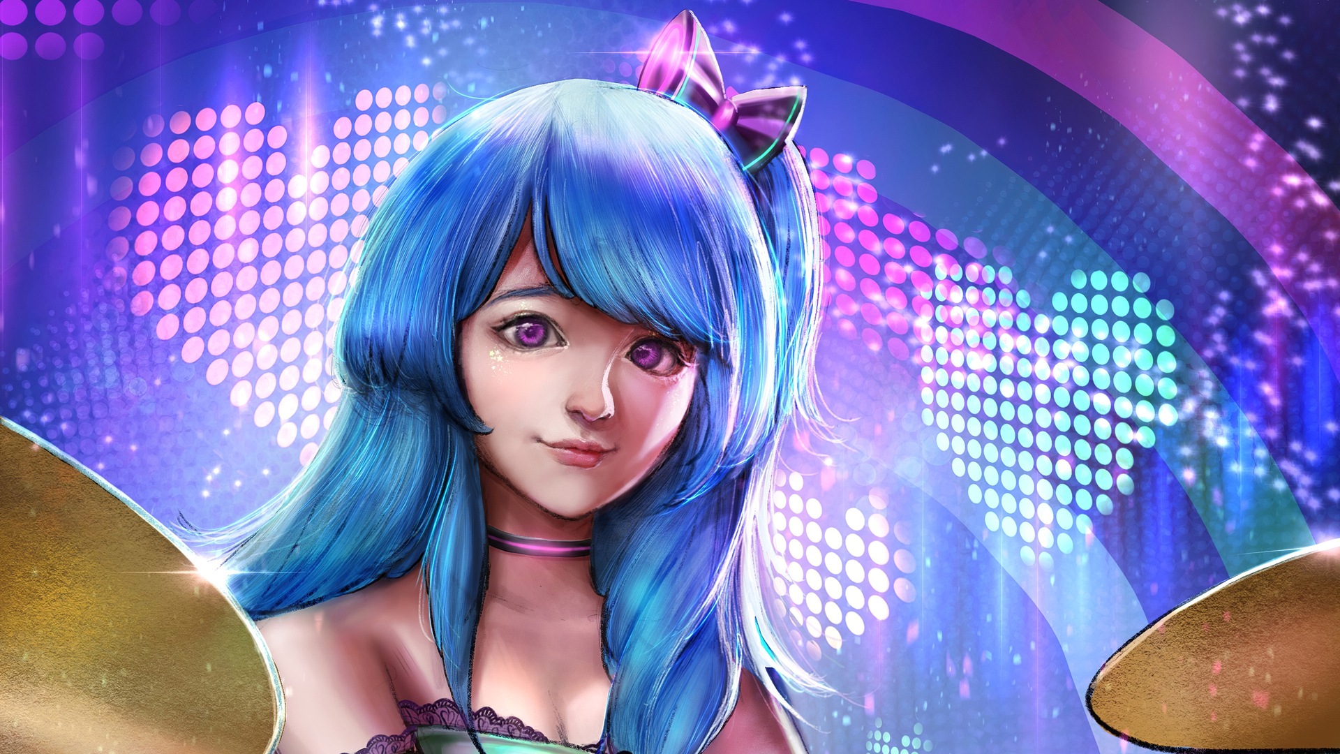 Девушка-барабанщица кибер-рока 4k