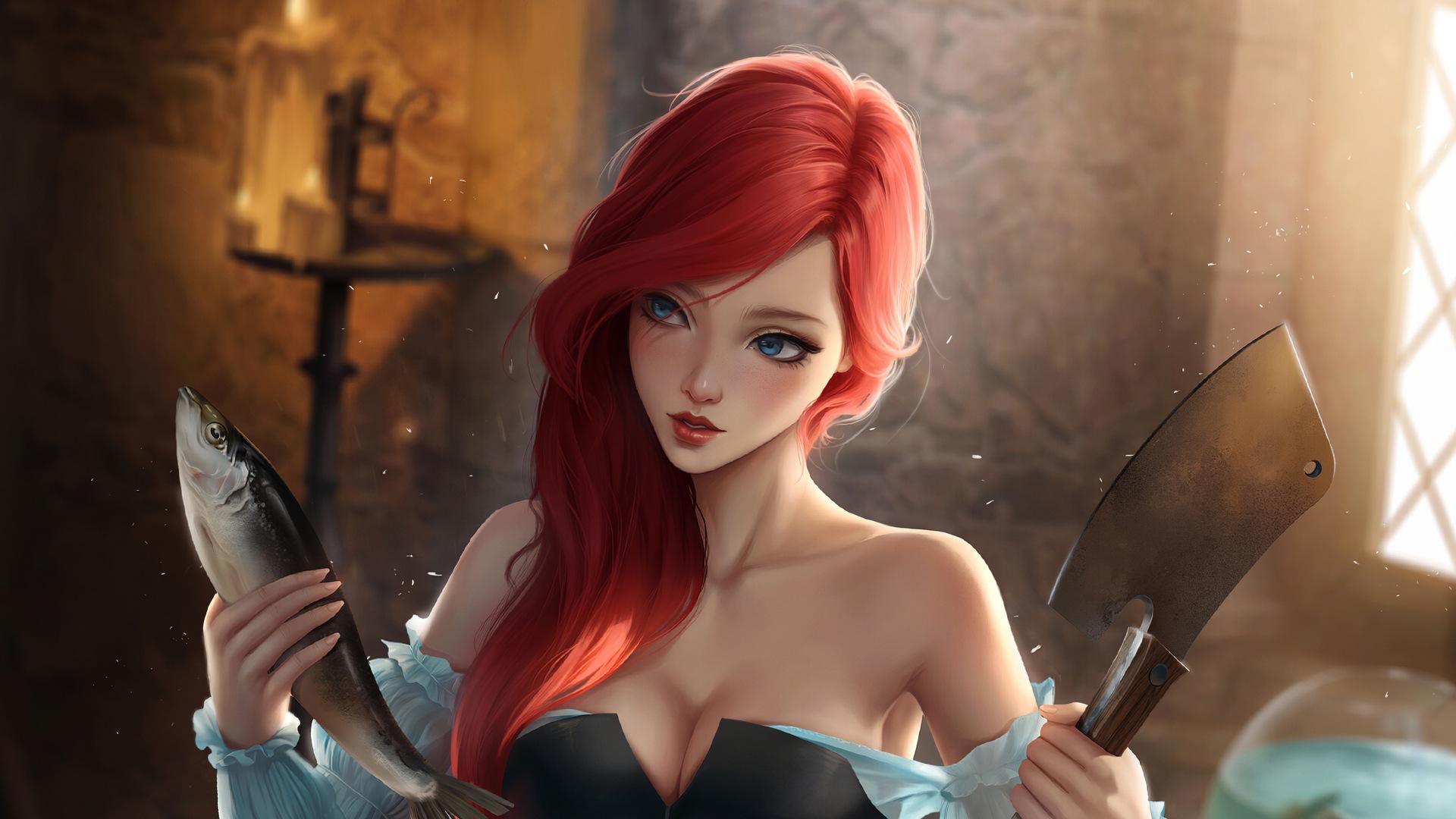Ариэль рубит рыбу