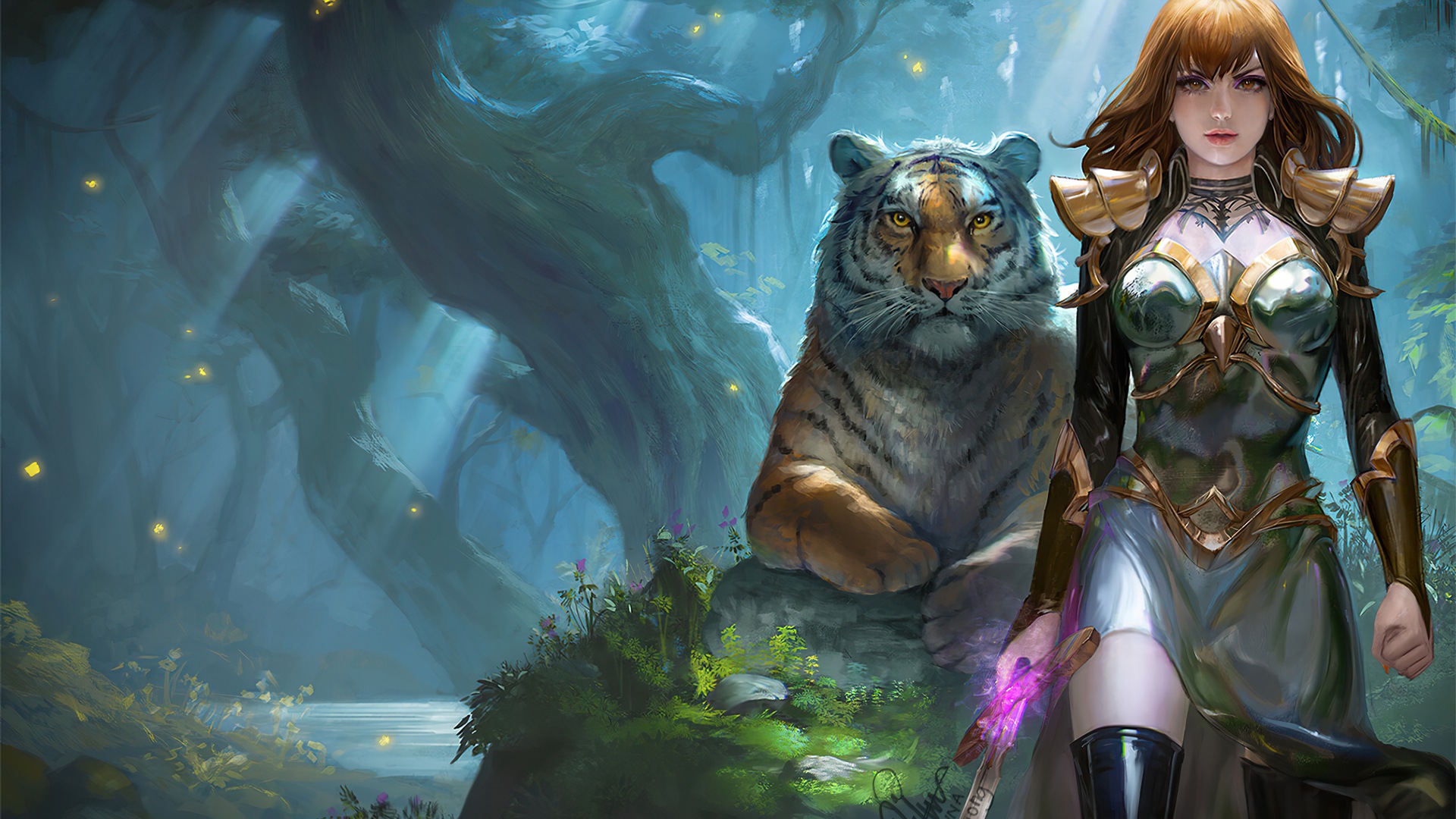 Девушка-Воин с Тигром