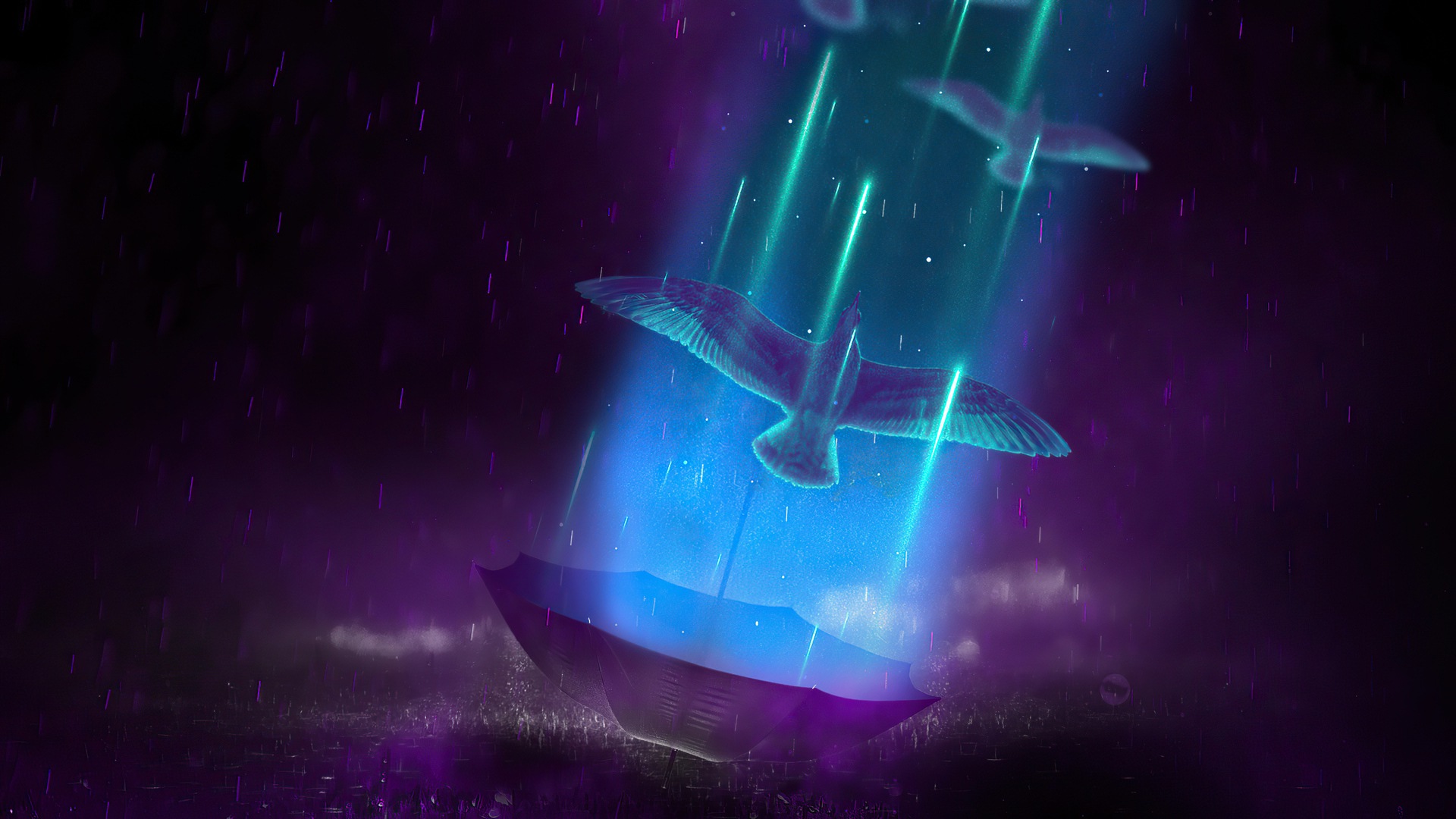 Жизнь Птицы Зонтик Дождь Ночь 4k