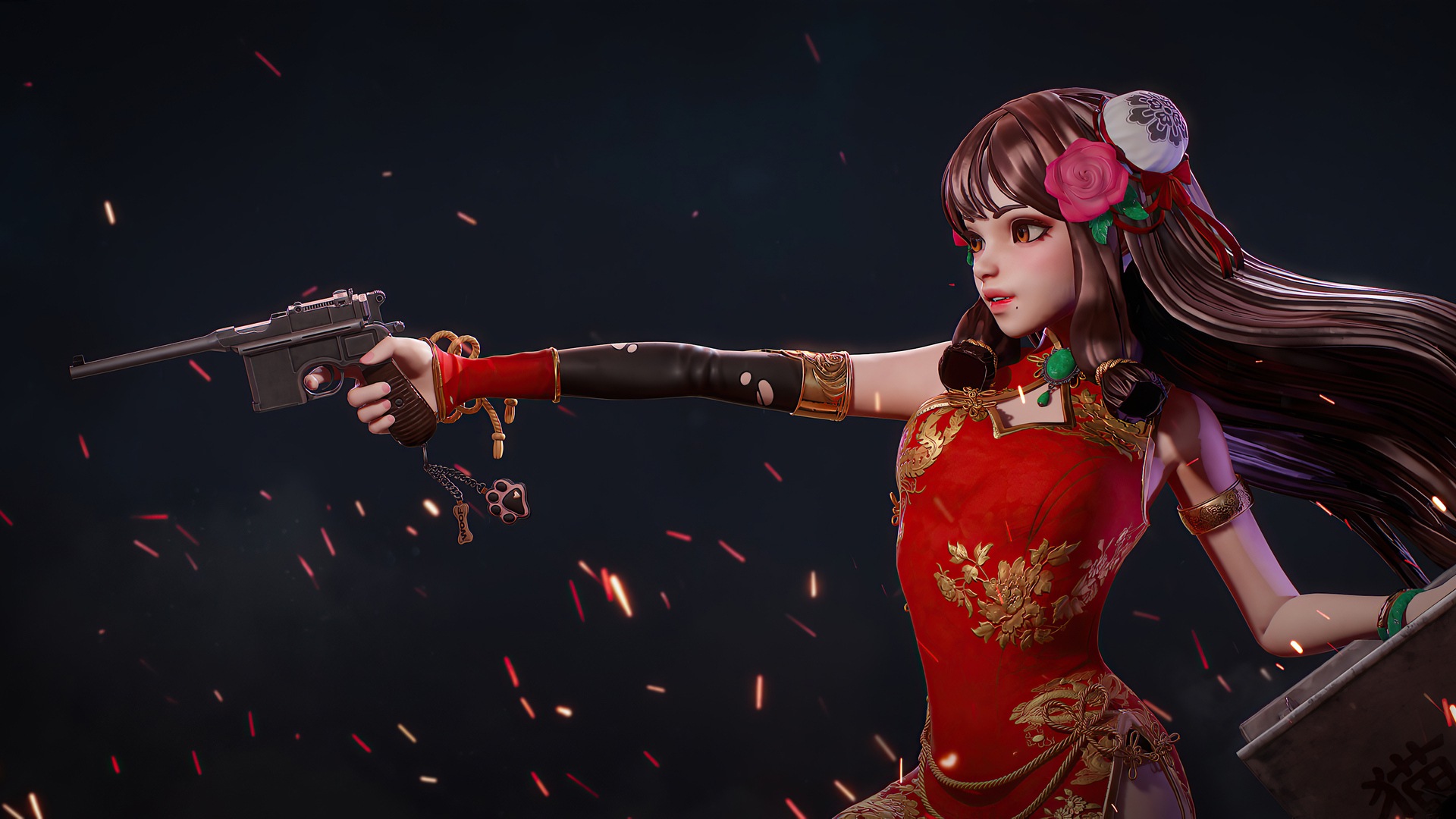 Девушка с пистолетом 4k Художественное произведение