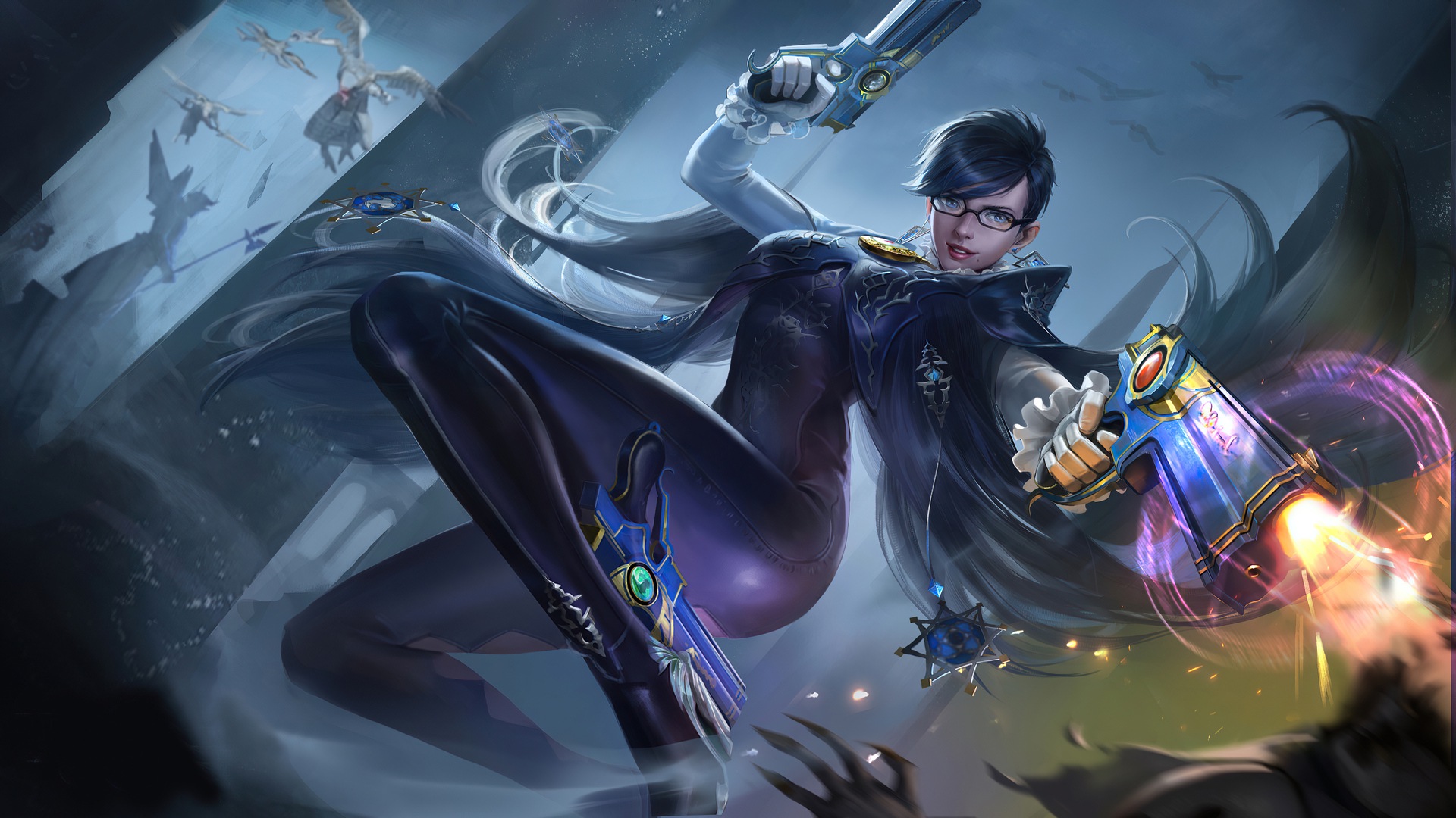 Девушка в очках с пистолетом 4k