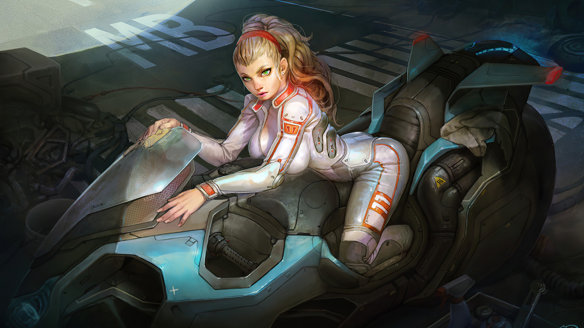 Кибер-байкер Девушка 4k 2021