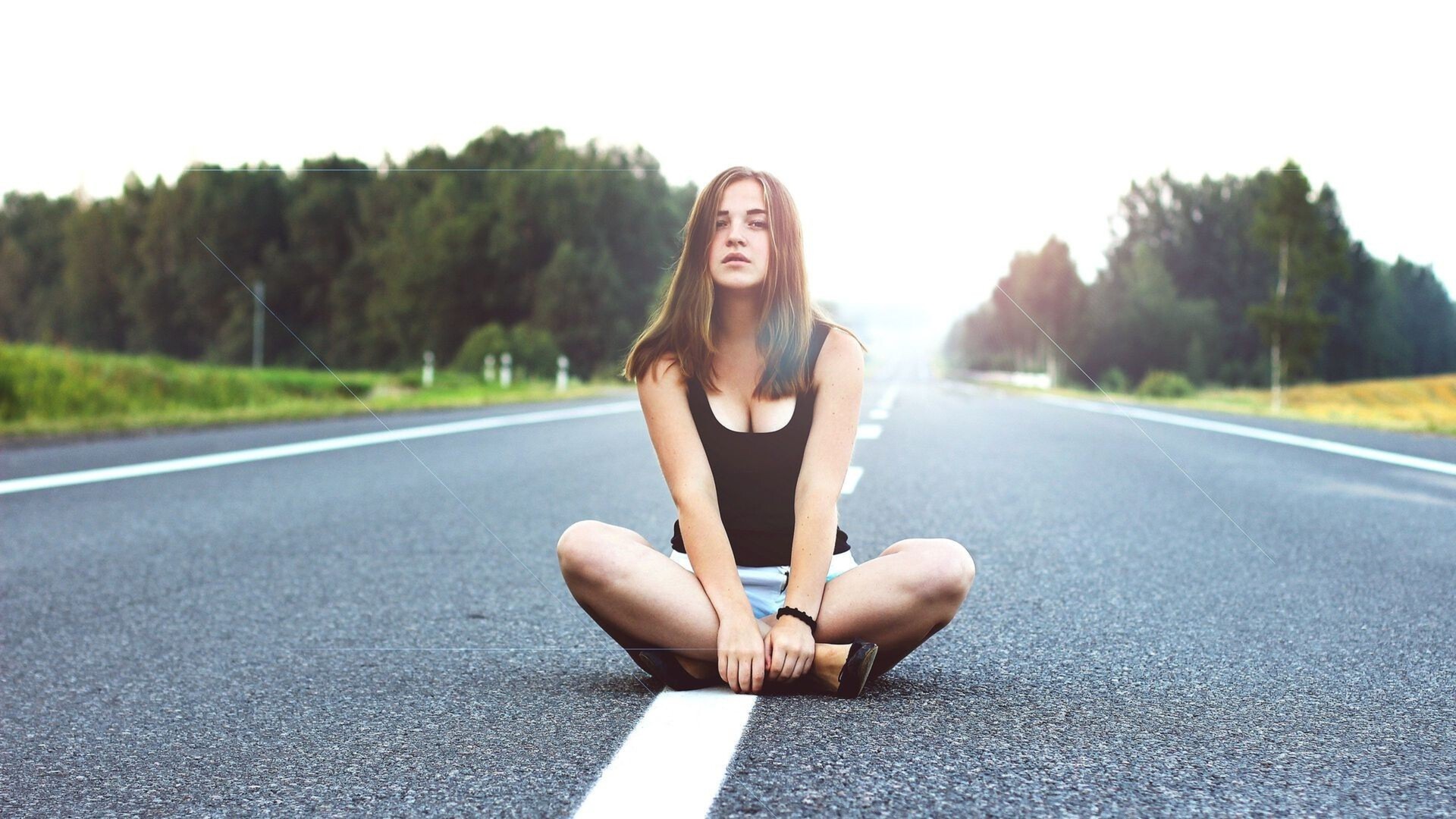 Девушка, Сидящая на Дороге