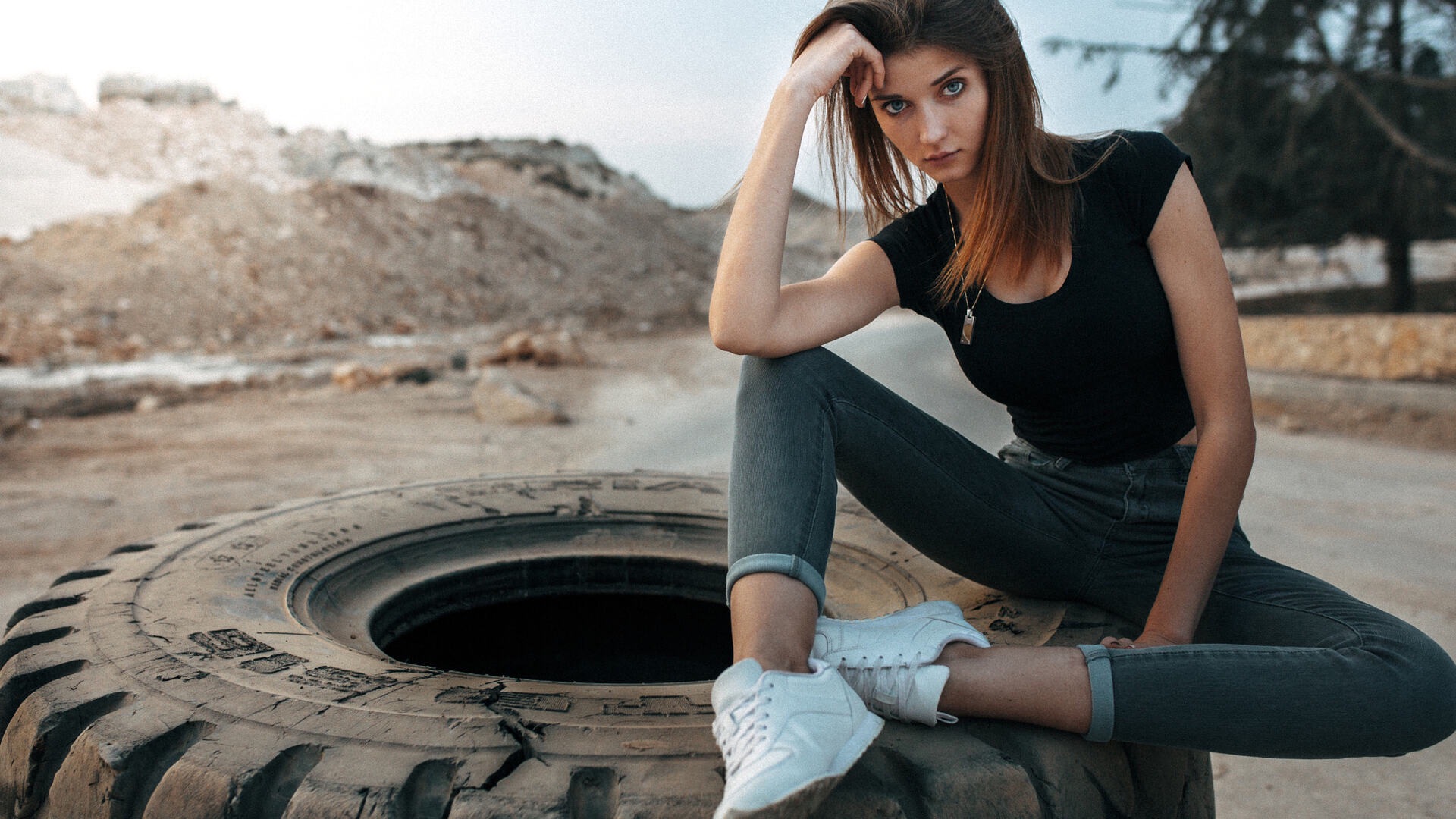 Девушка, Сидящая на Большой Шине