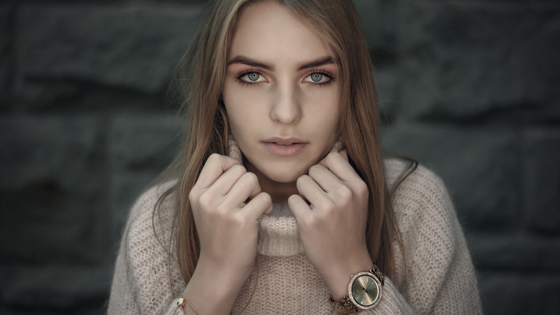 Красивая Модель Смотрит на Фотографа