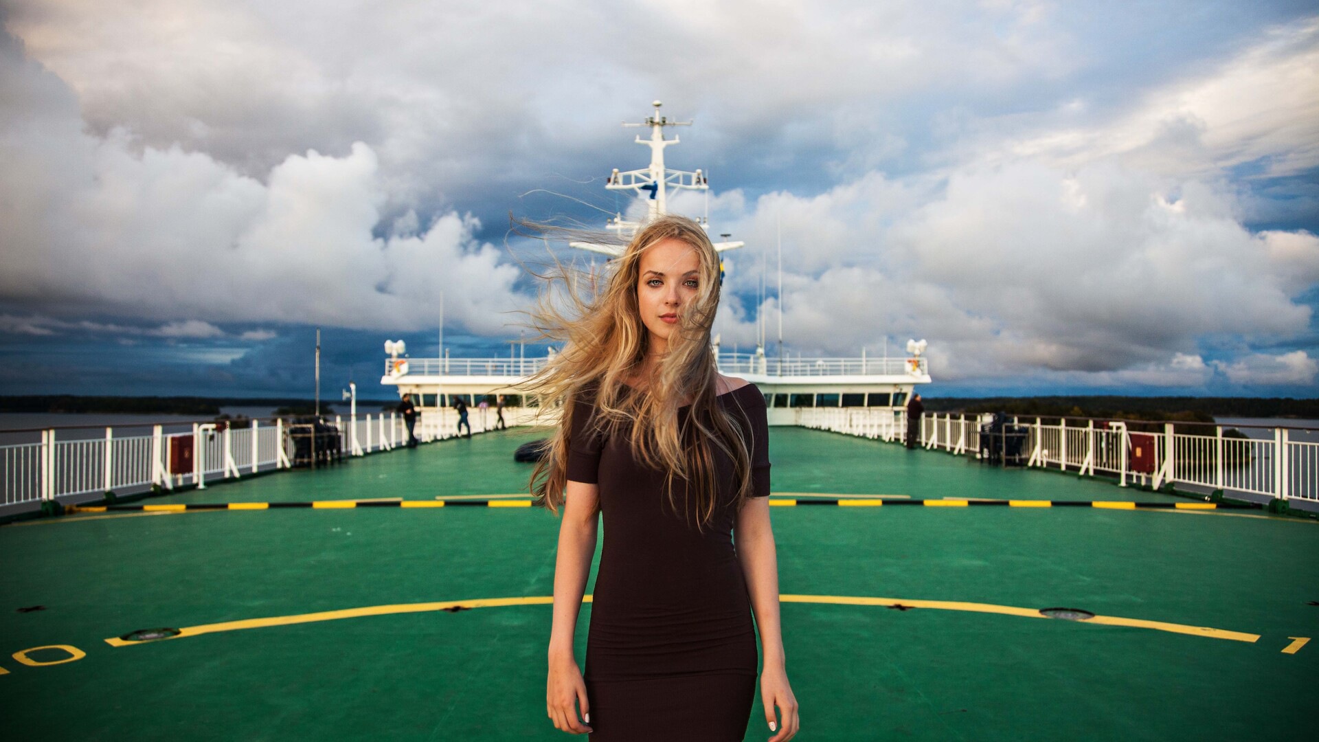 Девушка на Палубе Корабля 5k