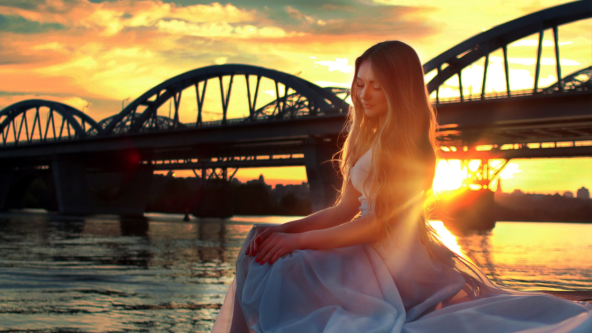 Девушка, Сидящая на Мосту Сбоку