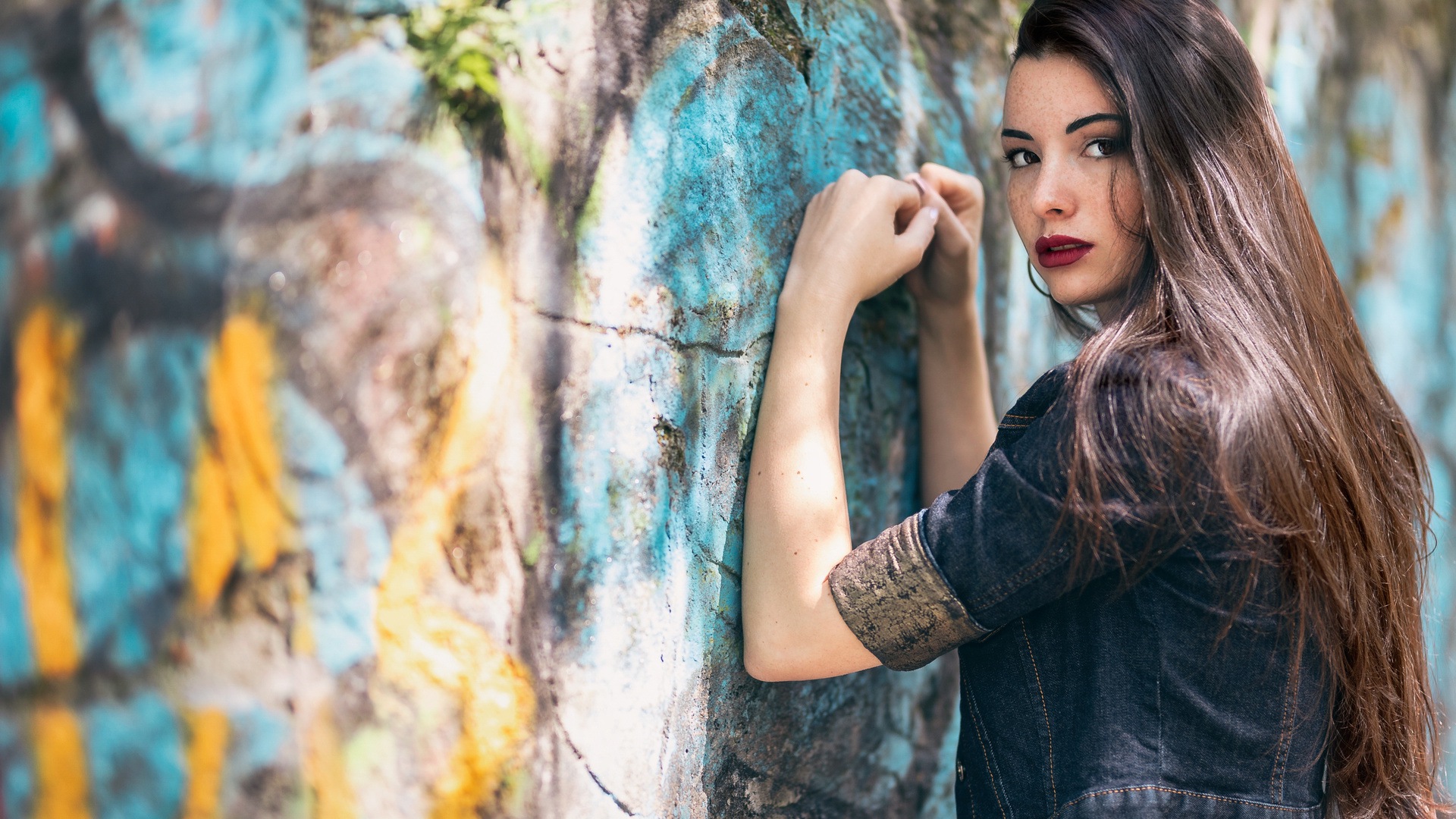 Девушка Поза Руки Волосы Взгляд Стена